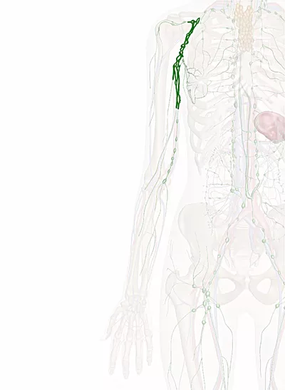 La linfa passa attraverso diversi set di linfonodi per completare il suo processo di filtrazione, prima di fluire in tronchi linfatici più grandi. I tronchi succlavia portano la linfa dai nodi ascellari attraverso il busto ai dotti linfatici sinistro e destro. Entrambi i dotti linfatici restituiscono la linfa filtrata alle vene succlavia, dove diventa parte del plasma sanguigno e ritorna al cuore per un’ulteriore circolazione.